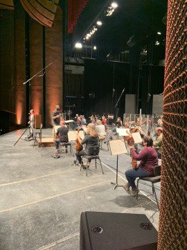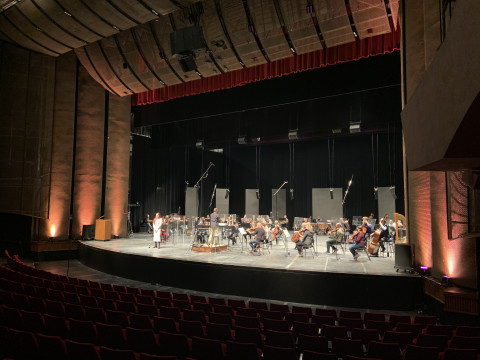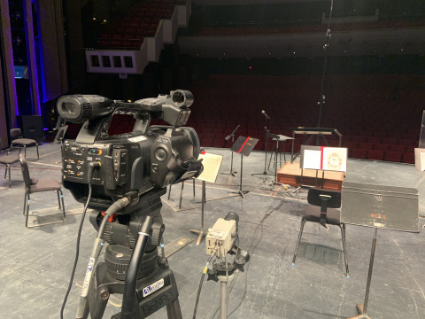 In the fall, when the WSO announced their intention to produce a season’s worth of streamed concerts from the stage of the Concert Hall, we realized that a concert featuring a reduced orchestra and solo singers was possible. We already had a relationship with the folks at AVentPro who have been providing us with projection equipment for our fully staged productions. AVentPro provided all of the gear and the necessary crew to produce the stream. We produced the concert onstage as we would normally – with the exception of adding all of the necessary COVID safety protocols and, of course, the fact that there was no audience in the Hall.